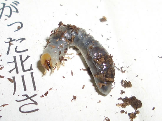 ↓一番大きかったのがA幼虫、小さい2頭はEとFと命名。