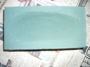 1.オアシスを用意します写真ではわかりにくいかもしれませんが100円ショップで売っている園芸用のオアシスです。 写真は、人口蛹室を作成した後の写真なので楕円形の穴が開いていますが、新品のオアシスはもちろんただの長方形です。 オアシスは素材は何か知りませんが、軽石のような感じのものですが、軽石のように固くはなく、金属スプーンで簡単に削れます。 |